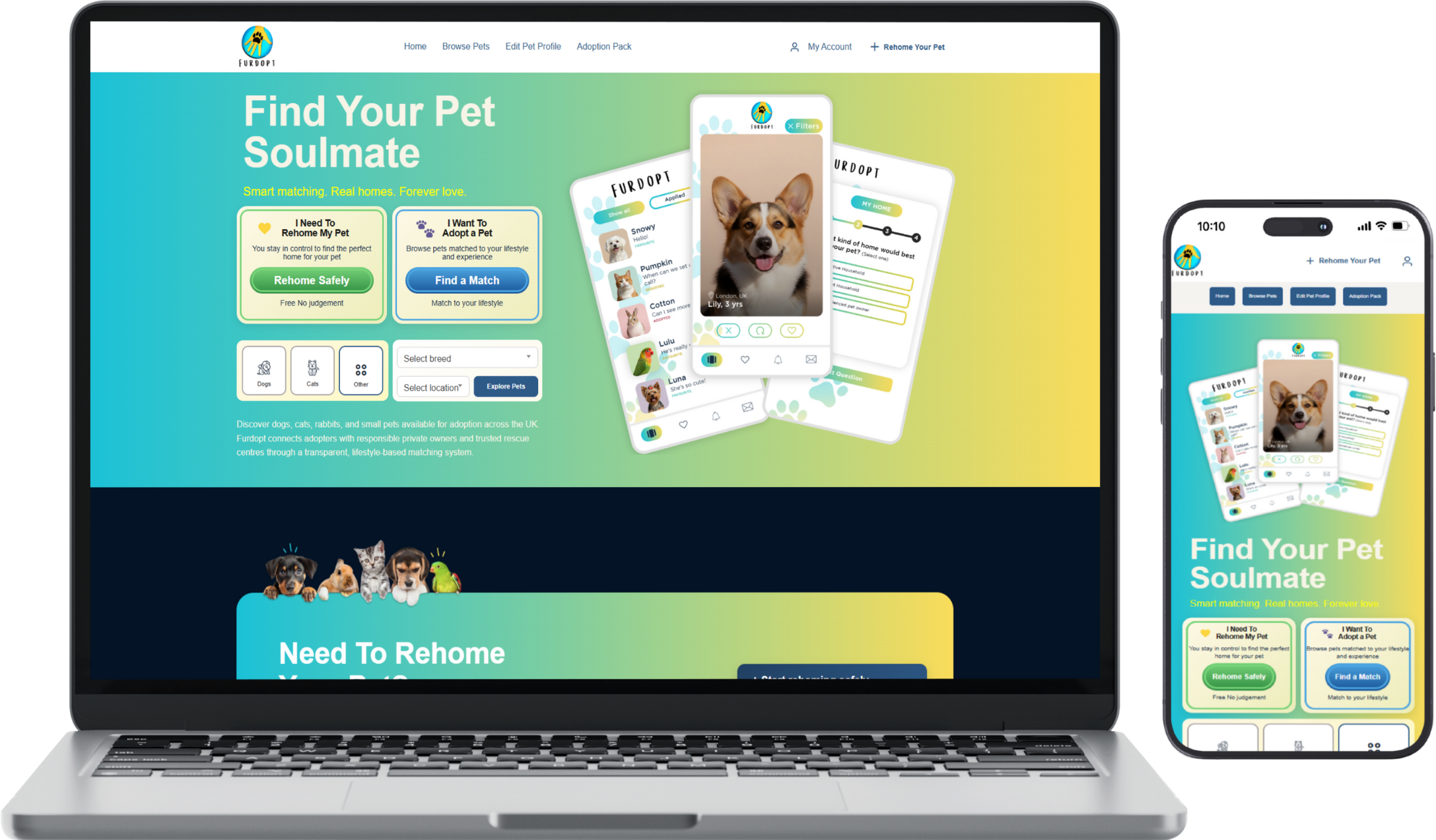 Organizing and presenting listings for multiple pet types—dogs, cats, rabbits, and small pets—required flexible data handling.
